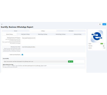 Your purchase includes complete CS-Cart addon installation package, WhatsApp Business API integration guide, comprehensive admin configuration panel, automated cron job setup instructions, customizable report templates, 30-day technical support from Ecartify experts, and regular compatibility updates.