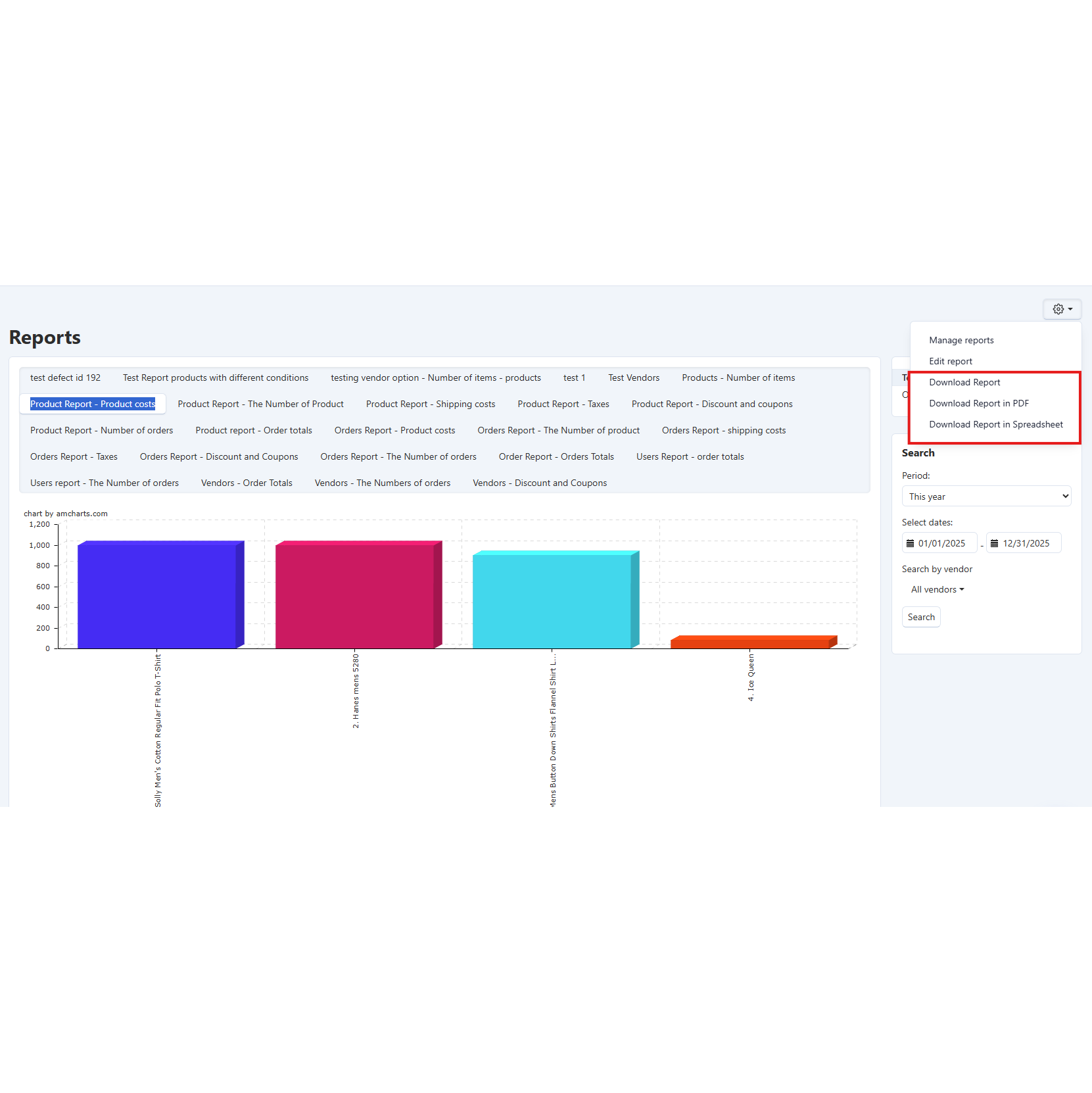 Vendor-Specific Conditions: Create custom reports with new vendor-specific conditions for deeper insights into marketplace operations. Analyze vendor sales patterns, seasonal trends, and performance metrics with advanced CS-Cart reporting capabilities.